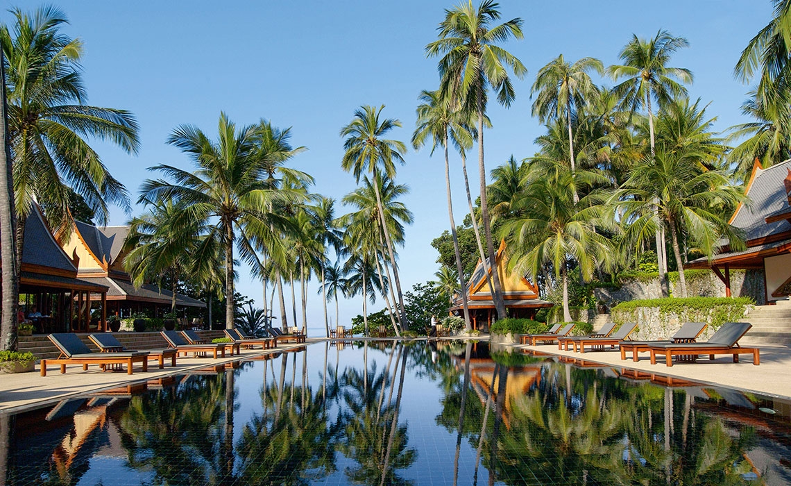 Das Amanpuri, übersetzt „friedvoller Ort“, setzte mit seiner Eröffnung 1988 als erstes Haus der legendären Hotelgruppe Aman neue Maßstäbe. Daran hat sich nichts geändert: Das luxuriöse Hideaway mit seinen 41 Pavillons und 39 Villen am weißen Strand an der Westküste Phukets punktet nach wie vor mit einem Höchstmaß an Privatsphäre, exzellentem Service und unaufdringlichem Luxus. Seine Lage inmitten einer früheren Kokosplantage auf einer geschlossenen Halbinsel mit Blick über die Andamanensee ist einzigartig. Unterhalb des Resorts entfaltet sich der malerische Pansea-Strand in einer geschützten privaten Bucht. Das luftige Thai-Design der mindestens 115 Quadratmeter großen Residenzen mit ihren spitzen Dächern und warmen Hölzern erinnert an Thailands einstige königliche Hauptstadt Ayutthaya. Die Gastronomie des Resorts verwöhnt mit italienischen, thailändischen, japanischen und veganen Spezialitäten. Gleich neben den Restaurants befindet sich der 27 Meter lange, in edlem Mitternachtsblau schimmernde Swimmingpool. Das ganzheitliche, großzügige Aman-Spa, das einen fantastischen Ausblick auf die tropischen Gärten und die Meeresbucht bietet, hat sich auf heilende Treatments mit ätherischen Ölen aus Bioprodukten spezialisiert.
