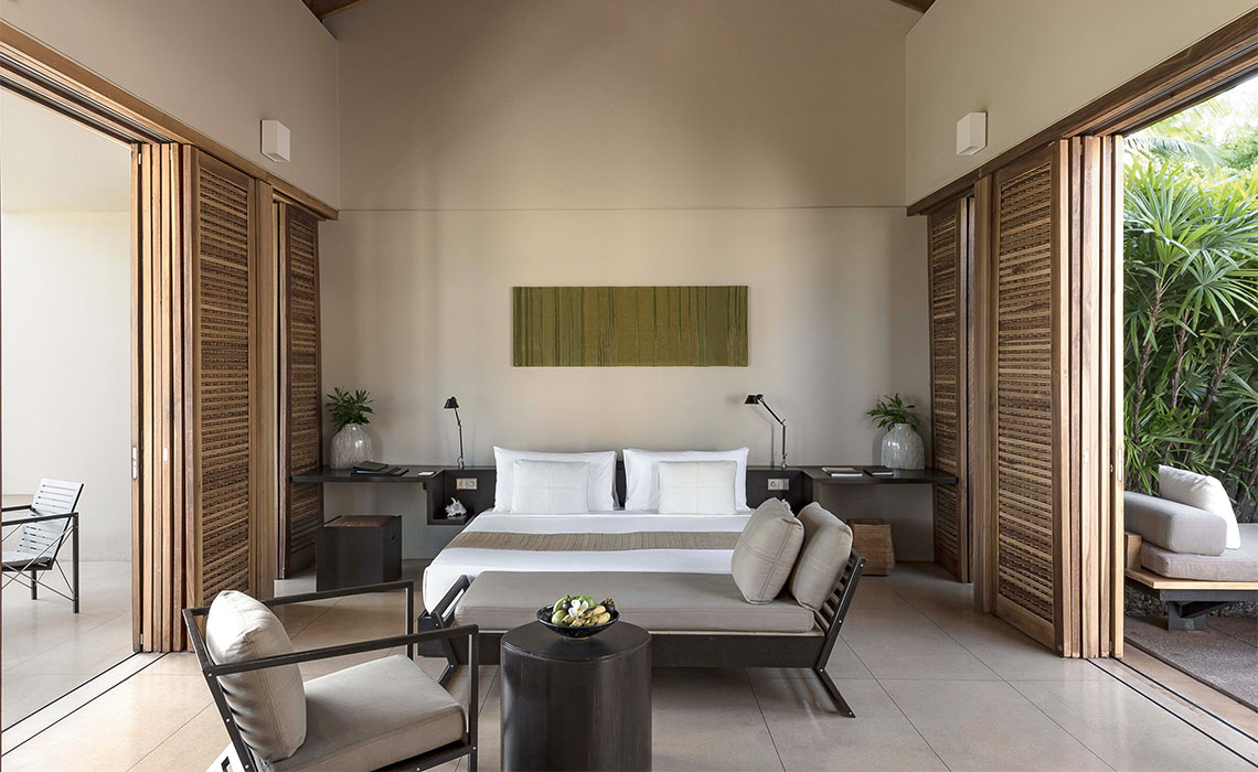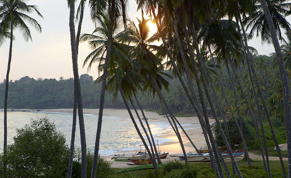Splendid Isolation? Hier ist sie: Nur 27 Suiten stehen leicht erhöht zwischen mächtigen Felsen und schlanken Palmen über dem sichelförmigen Strand einer postkartenschönen Bucht. Außer vereinzelten Hotelgästen sind hier bestenfalls ein paar Fischer mit ihren bunten Booten zu sehen. In dieser paradiesischen Landschaft überrascht das Amanwella mit seinem geradlinigen Design, das den tropischen Minimalismus des einheimischen Stararchitekten Geoffrey Bawa aufnimmt. Die frei stehenden, aus lokalem Stein und Holz errichteten Suiten ducken sich diskret in die Landschaft, ihre Größe, ihr Pool und die großzügigen Balkone sind vom Strand aus nur zu erahnen. Das Resort ist intim: Es gibt nur ein Restaurant mit köstlicher Fusion-Cuisine und zwei Terrassen mit Blick auf den fast 50 Meter langen Pool und einen meist spektakulären Sonnenuntergang. Zwei hoch auf einem Hügel schwebende Spa-Suiten, eine Boutique, eine Bibliothek und einen Beach-Club runden das kleine, aber überaus feine Angebot ab.