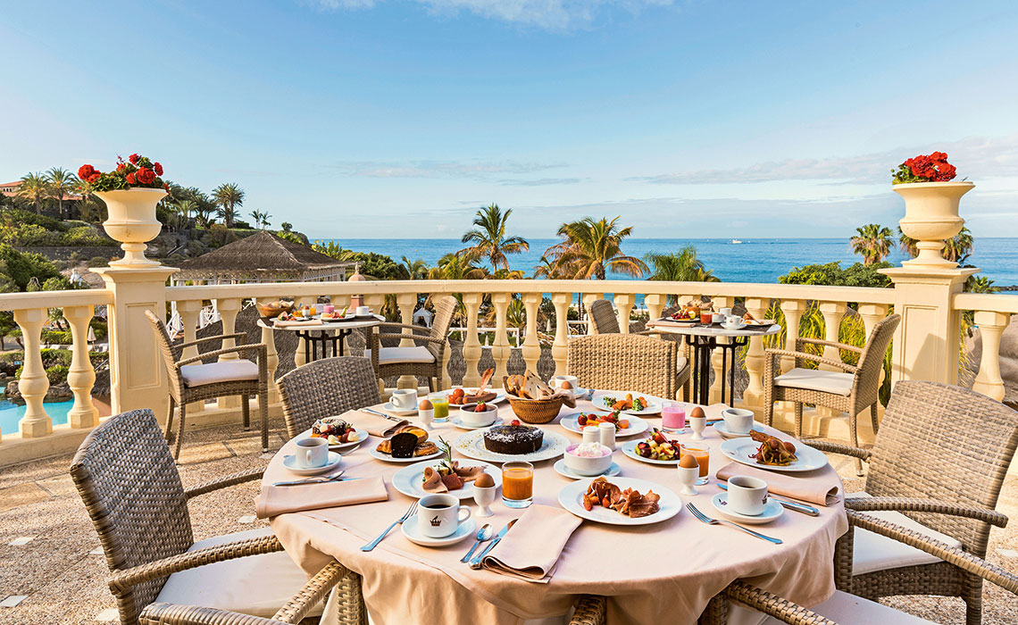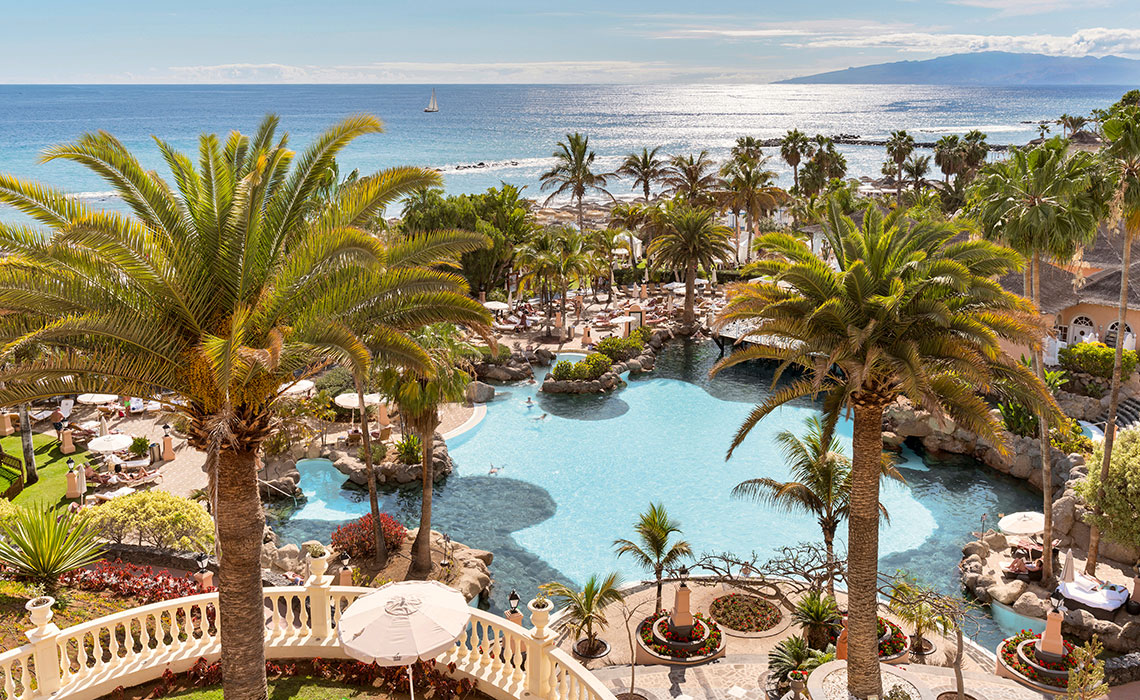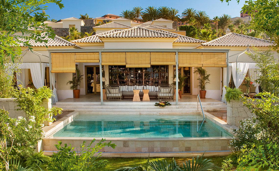 Das bekannteste Luxushotel Teneriffas setzt immer noch Standards in Sachen Standort, Stil und Service. Wie ein gewohnter Goldmedaillengewinner besetzt das Hotel die oberste Stufe auf dem Podium, wenn es um die beste Lage im Süden der Insel geht. Über seine terrassenförmig angelegten Gärten bietet es direkten Zugang zur Uferpromenade und dem Sandstrand mit Palmen. Ein kurzer Spaziergang führt zu den schicksten Boutiquen der Costa Adeje, zwei Golfplätze liegen keine zehn Fahrminuten entfernt. Doch warum sollte man das Hotel überhaupt verlassen wollen? Die einem spanischen Dorf aus dem 19. Jahrhundert nachempfundene Anlage lädt zu einer Entdeckungsreise ein: Jedes der honig- und rosafarbenen Wohnhäuser steht für ein berühmtes Gebäude Spaniens. Dazu kommen: fünf Schwimmbäder, neun Restaurants, 13 Bars und Lounges, ein Spa mit Gym sowie diverse Tennisplätze, ein Observatorium und der fantastische Strand vor der Tür.