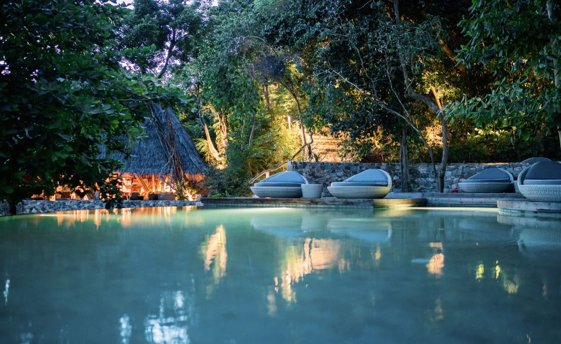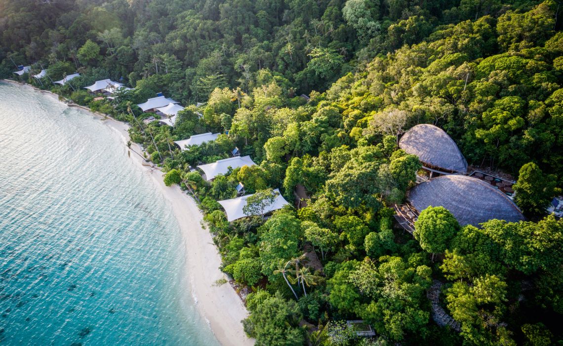 Niemand hatte sich besonders für die Anambas-Inselgruppe zwischen Malaysia und Borneo interessiert, ja nicht einmal von deren Existenz gewusst, bis Bawah Reserve den tropischen Archipel auf den Reiseradar anspruchsvoller Trendsetter brachte und zum neuen Hotspot. Bawah ist eine Naturschönheit mit 13 strahlend weißen Stränden, kristallklaren Lagunen und üppigem Dschungelgrün. Hier und dort verstreut stehen 35 ökologisch mustergültig errichtete Luxusvillen, die mit Bambuswänden, Teakholzböden, Himmelbetten, handgewebten Teppichen und Kupferbadewannen zugleich erdverbunden, stylisch und cool wirken. Als besonderes Highlight gilt die Gastronomie der vier Bars und Restaurants. Ob tropisches Frühstück, exotischer Cocktail oder Fünf-Gänge-Menü – in Singapur, Bangkok oder Paris könnte es nicht besser schmecken