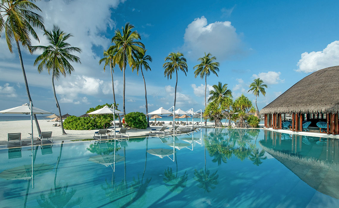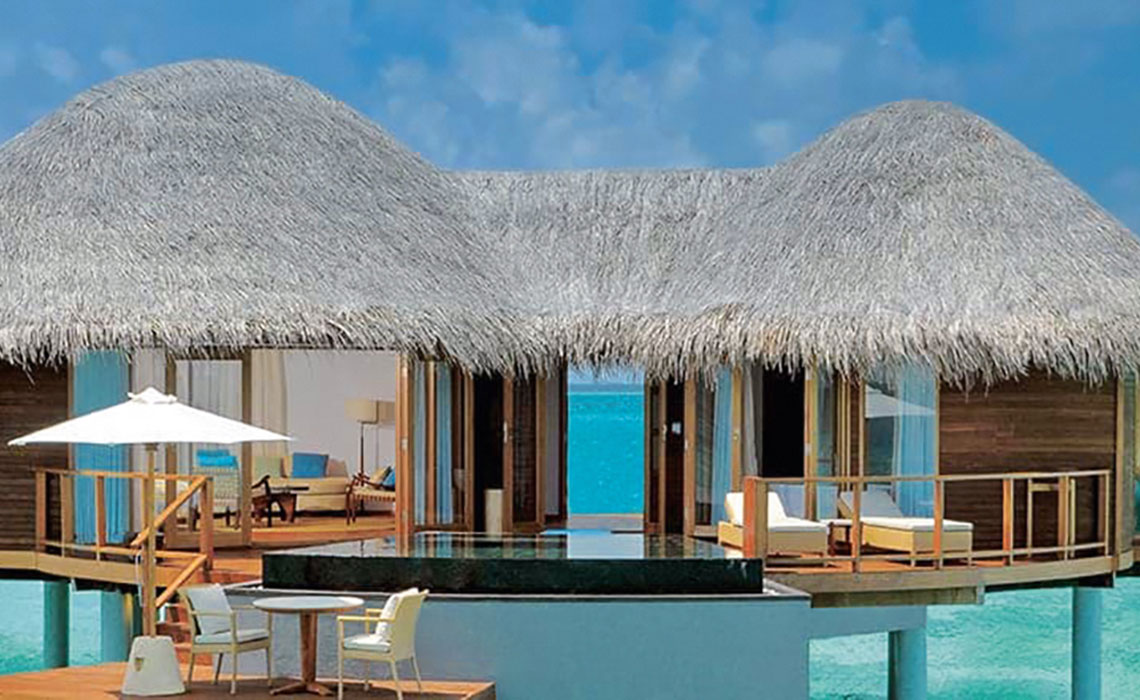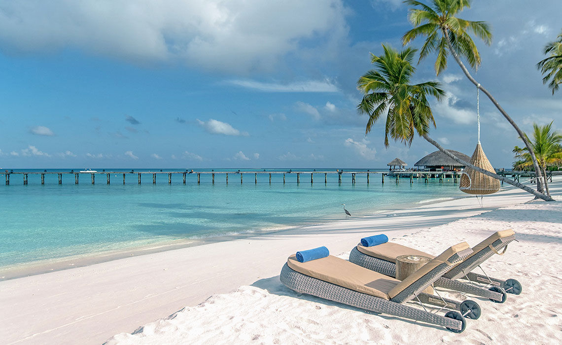 Es gibt 1.200 Malediven-Inseln, die meisten davon sind unberührt. Nur knapp 200 sind bewohnt, entweder von der einheimischen Bevölkerung oder von Urlaubsgästen, die hier ihren Südseetraum ausleben, obwohl sie nicht in der Südsee sind. Die ist viel weiter weg, aber optisch vergleichbar: Beim Anflug aus der Luft wirkt es, als habe Frau Holle ihr Kissen geschüttelt, nur dass anstelle von Federn Inseln in die Tiefe fielen. Dort schwimmen sie nun im türkisblauen Indischen Ozean. Ihr Kern ist dschungelgrün, ihre Ränder sind sandweiß und an langen Stegen, die wie schlanke Insektenbeine über das Wasser führen, reihen sich Häuschen, die sich aus der Nähe betrachtet als meist luxuriöse, großzügige Gäste-Bungalows entpuppen. In der Regel gilt: eine Insel, ein Hotel. In vielen davon wird Privacy zelebriert, in anderen auch öfter gefeiert. Breit gefächerte Wassersportmöglichkeiten, schöne Spas und diverse Restaurants bieten Abwechslung – doch eigentlich braucht man sie nicht. Die Aussicht von der eigenen Terrasse auf das Meer und die Privatleiter ins Wasser reichen, um wunschlos glücklich zu sein. So kommen Freunde ungestörter Einsamkeit ebenso auf ihre Kosten wie all jene, die Unterhaltung, Sport, Gourmet-Dining und Luxus suchen.