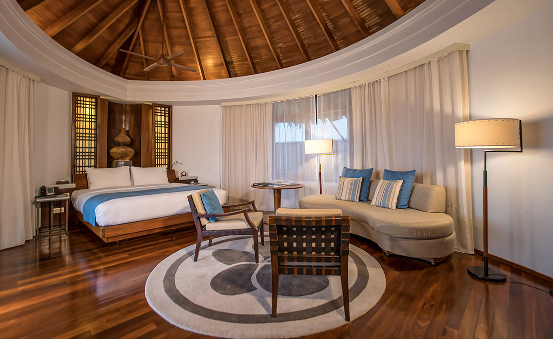 Wasservillen: gleiche Ausstattung wie Beach-Villen, jedoch geschlossenes Badezimmer.