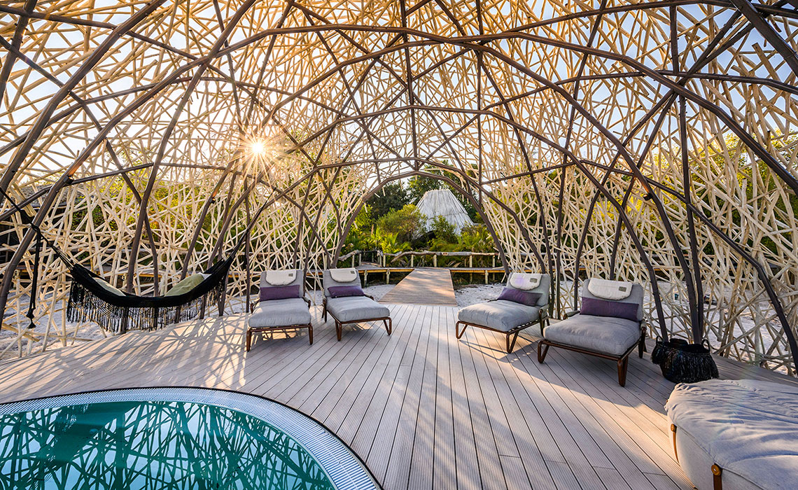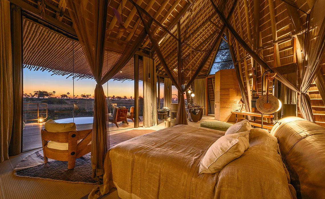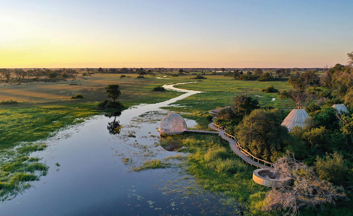 Das seit über 20 Jahren für seine Pionierarbeit im Bereich des nachhaltigen Ökotourismus bekannte Wilderness- Safaris-Camp wurde kürzlich komplett neu errichtet und erhielt einen frischen, modernen Look bei gleichbleibend minimalem ökologischem Fußabdruck. Wie sein Vorgänger steht es leicht erhöht und fügt sich harmonisch in das Blätterdach des Okavangodeltas ein. Zwischen den Baumwipfeln befinden sich eine Indoor- und eine Outdoor-Lounge, mehrere private Speiseplätze und ein Feuerdeck. Neben fünf geräumigen Zeltsuiten verfügt Jao auch über zwei exklusive Villen mit eigenem Privatfahrzeug, Guide, Koch und Butler. Villen wie Suiten sind mit privatem Pool, Lounge- und Essbereichen versehen, die Bäder bieten sowohl eine Innen- als auch eine Außendusche. Das Camp beherbergt ein Museum mit Exponaten zu Geschichte, Flora und Fauna Botswanas, zu sehen sind auch botanische Zeichnungen des Urgroßvaters der Inhaber des Camps, der seinerzeit ein berühmter Botaniker war.