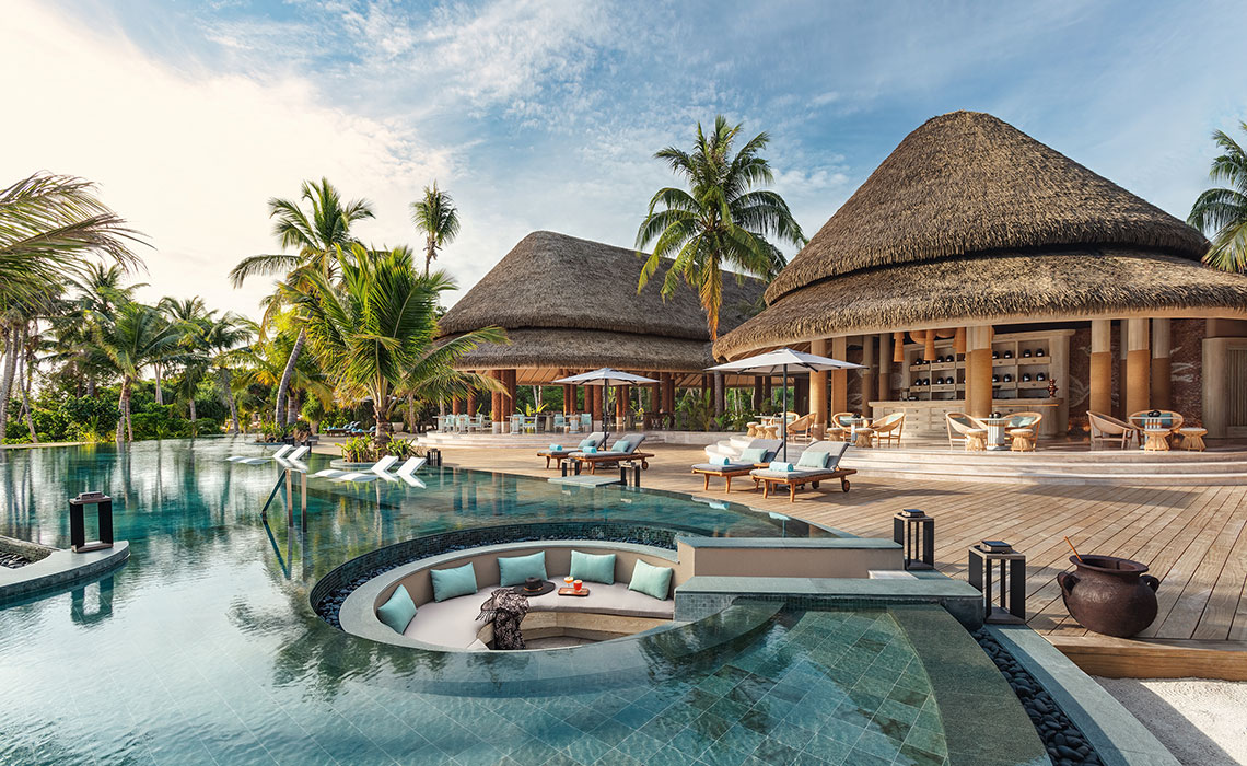 Nicht, dass es auf den Malediven an Wellnessangeboten mangelt – doch das neue Joali Being ist das erste Luxus-Retreat, das sich ausschließlich auf Wellness konzentriert. Es befindet sich auf der kleinen Naturinsel Bodufushi im Raa-Atoll, unweit der Schwesteranlage Joali Maldives und nur einen kurzen Wasserflug vom internationalen Flughafen Male entfernt. Die 68 Strand- und Wasservillen mit Pool, das Restaurant mit unterschiedlicher Signature-Küche und das Spa mit 39 Behandlungsräumen wurden nach biophilen Prinzipien gebaut, um die Verbindung zur Natur zu fördern. Dazu passen die strohgedeckten Strukturen mit hohen Decken, Sandböden und Dachlinien, die die Wellen imitieren. Bei der Einrichtung prägen schön verarbeitetes Treibholz, Schilfrohr, Kokosfasern und eine Farbpalette in Kieselgrau, Rosarot und Zartblau den Look. Die individuellen Wellnessprogramme kombinieren modernes Hightech mit alten Praktiken und werden von Naturheilkundlern, Bewegungsexperten und Ernährungsberatern betreut.