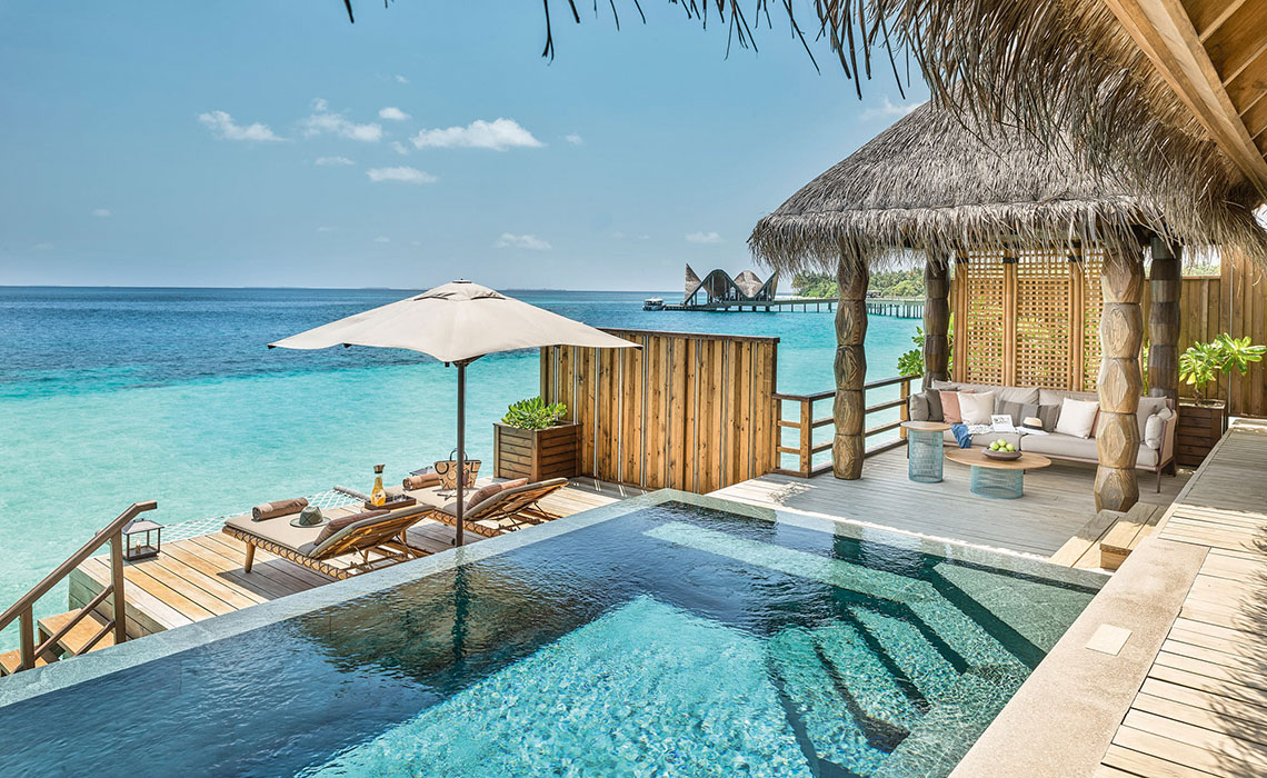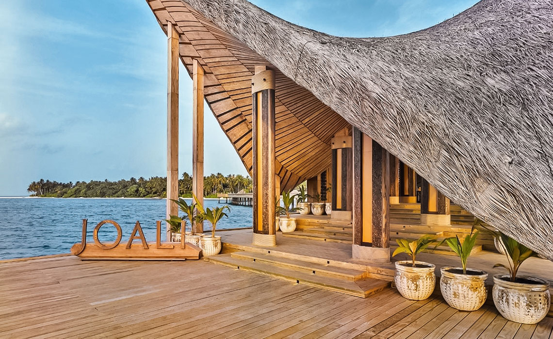 Obwohl die Malediven als Flitterwochen-Destination schlechthin gelten, gibt es einige Resorts, die Paare auch später noch gerne empfangen. Erst recht, wenn sie Kinder mitbringen. Das Joali Maldives gehört in diese Kategorie. Die 73 Strand- und Wasservillen stehen auf Muravandhoo Island im nördlich gelegenen Raa-Atoll, das mit tiefblauem Wasser, einem unberührten Korallenriff, makellosen Sandstränden und üppigem Grün punktet. Kinder erwartet eine breite Auswahl an Freizeitmöglichkeiten: Es gibt ein Baumhaus, Kochkurse für Junioren, organisierte Schatzsuchen und Einheimische, die Geschichten am Lagerfeuer erzählen. Die kleinste Wohneinheit ist für drei Gäste gedacht, es gibt aber auch sehr große Villen mit zwei Pools und eine Vier-Schlafzimmer-Strand-Duplex-Villa. Auch an Erwachsene wurde gedacht. Von den fünf Restaurants sticht eines durch seine japanisch-peruanische Küche hervor, nach dem Essen wartet eine schicke Whisky-Lounge und zum Entspannen stehen eine Bibliothek und ein exzellentes ESPA bereit. Eine Besonderheit der Anlage sind die Kunst, die überall zu sehen ist, sowie das Naturschutzprogramm, dem sich das Hotel verpflichtet fühlt und das den Gästen ohne jede Schulmeisterei nähergebracht wird.