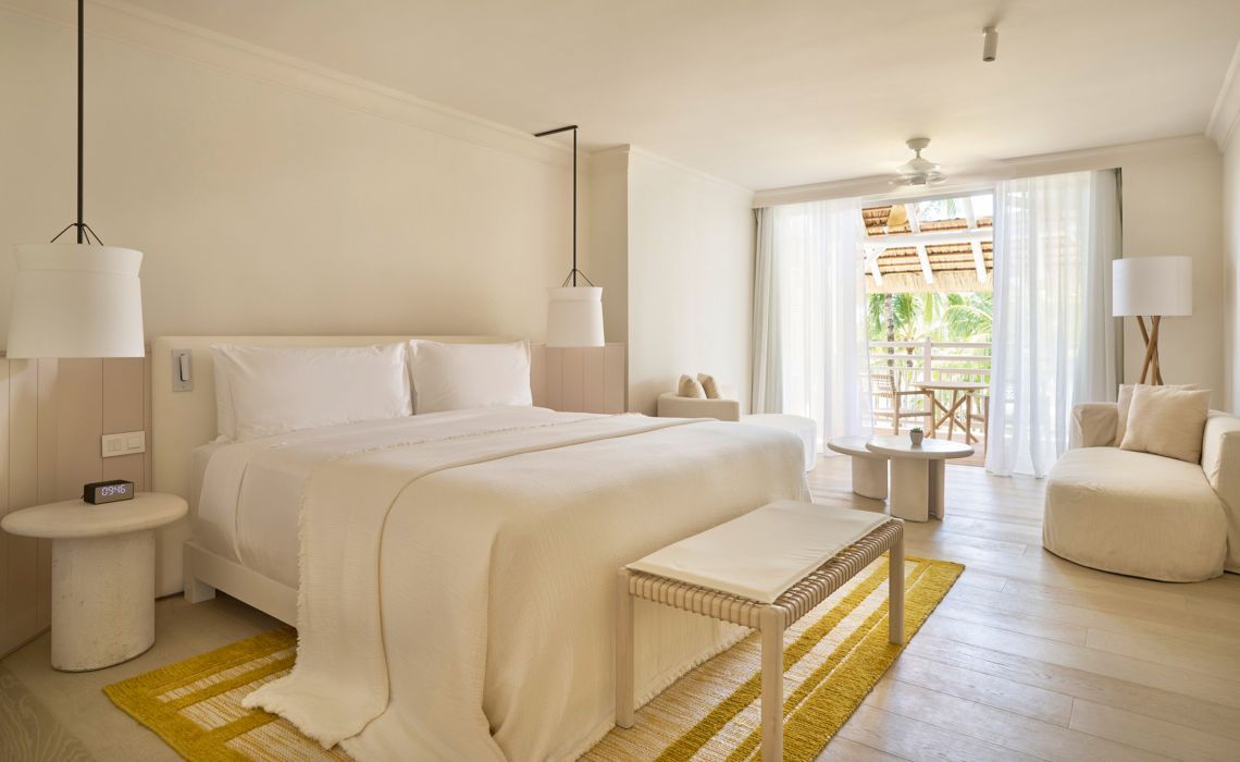 Das LUX* Belle Mare liegt an Mauritius' unberührter Ostküste an einem puderzuckerweißen Strand, der von schlanken Kokospalmen gesäumt und von einer türkisfarbenen Lagune umspült ist. Nach einem Brand vor zwei Jahren wurde das Resort komplett neu gestaltet und mit dem neuen, tropischen Look eines einheimischen Architekten-Designer-Teams wiedereröffnet. In den luftig-minimalistischen 174 Suiten und zwölf Villen finden sich Anspielungen auf die umliegende Natur: Sie sind in hellem Weiß und Sandtönen gehalten, lebhafte Naturtöne – ein buttergelbes Sofa oder ein korallenroter Teppich – setzen farbliche Akzente. Von den Balkonen schaut man auf die üppigen, gepflegten Gärten oder auf den Ozean. Gourmets dürfen sich auf fünf Restaurants freuen – darunter das Amari, in dem Starchef Vineet Bhatia moderne indische Küche servieren lässt. Für Wellness-Fans steht ein einmalig schönes Spa bereit, für Schwimmer ein fast 2.000 qm großer Pool. Wer etwas Besonderes erleben möchte, nutzt den Katamaran-Tag „The LUX* Way” und segelt bis zur Ile aux Aigrettes. Dort kann man nicht nur schwimmen und schnorcheln, sondern erfährt auch einiges über die Arbeit, die zum Schutz von Tieren und der Umwelt getan wird.