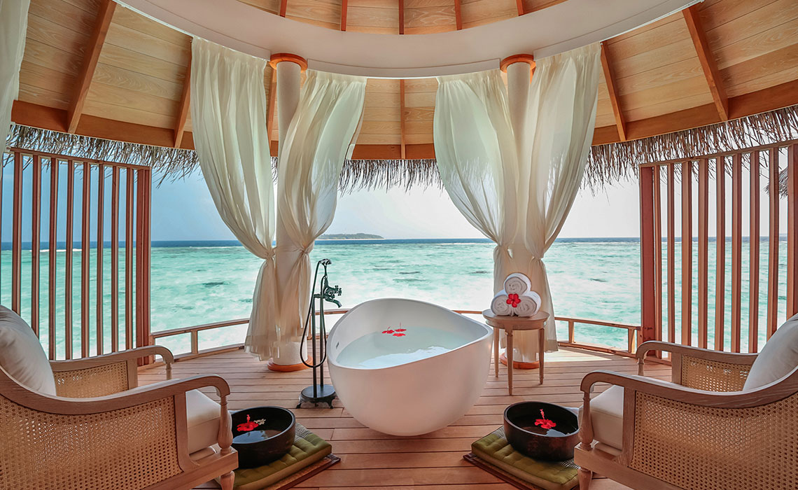 3 Restaurants, 3 Bars, Swimmingpool, Overwater-Spa mit Yoga- und Meditationsraum