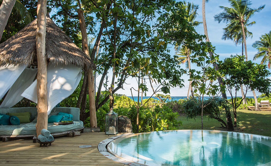 Der Traum von der einsamen Insel? Auf den Seychellen wird er (fast) wahr. Viele der rund 115 Inseln vor der Ostküste Afrikas sind unbewohnt, auf zwei, drei Handvoll anderer stehen exklusive Hotels, die ihren Gästen so viel Privatsphäre wie möglich bieten. Wer also wirklich seine Ruhe haben möchte – hier findet er sie. Und dazu noch einiges mehr: perfekten Service, spektakuläre Landschaften, seltene Tierarten und ein Gefühl von Harmonie. Dass man nicht ganz alleine ist, hat auch ein paar Vorteile. Schließlich stört es nicht, wenn der Butler mit dem eben erst bestellten Lunch auf der Terrasse erscheint oder wenn man beim Abendessen auf ein paar sympathische Gleichgesinnte trifft. Das sind ohnehin nur kurze Momente der Geselligkeit, die spätestens dann enden, wenn man die Tür der eigenen Pool-Villa hinter sich schließt.