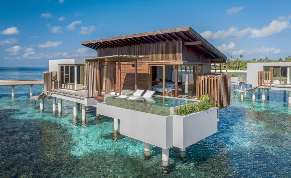 Es gibt 1.200 Malediven-Inseln, die meisten davon sind unberührt. Nur knapp 200 sind bewohnt, entweder von der einheimischen Bevölkerung oder von Urlaubsgästen, die hier ihren Südseetraum ausleben, obwohl sie nicht in der Südsee sind. Die ist viel weiter weg, aber optisch vergleichbar: Beim Anflug aus der Luft wirkt es, als habe Frau Holle ihr Kissen geschüttelt, nur dass anstelle von Federn Inseln in die Tiefe fielen. Dort schwimmen sie nun im türkisblauen Indischen Ozean. Ihr Kern ist dschungelgrün, ihre Ränder sind sandweiß und an langen Stegen, die wie schlanke Insektenbeine über das Wasser führen, reihen sich Häuschen, die sich aus der Nähe betrachtet als meist luxuriöse, großzügige Gäste-Bungalows entpuppen. In der Regel gilt: eine Insel, ein Hotel. In vielen davon wird Privacy zelebriert, in anderen auch öfter gefeiert. Breit gefächerte Wassersportmöglichkeiten, schöne Spas und diverse Restaurants bieten Abwechslung – doch eigentlich braucht man sie nicht. Die Aussicht von der eigenen Terrasse auf das Meer und die Privatleiter ins Wasser reichen, um wunschlos glücklich zu sein. So kommen Freunde ungestörter Einsamkeit ebenso auf ihre Kosten wie all jene, die Unterhaltung, Sport, Gourmet-Dining und Luxus suchen.