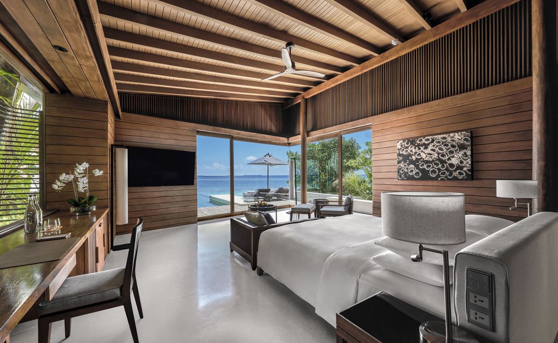 Minimalistisches Design, das (dennoch) große Gemütlichkeit ausstrahlt, geräumig und sehr komfortabel, mit Innen- und Außendusche, TV, iPod-Station, Minibar, Espressomaschine, Safe, teilweise mit eigenem Pool.