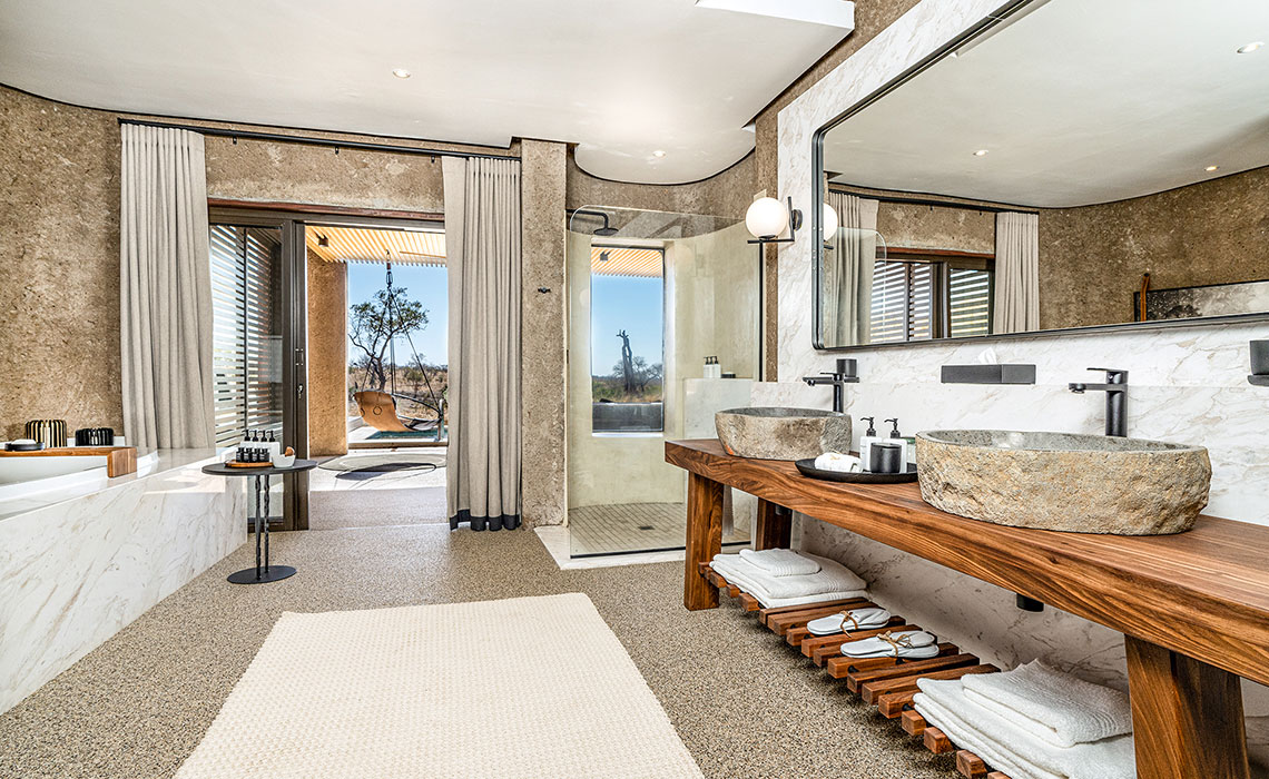 Restaurant (mit Blick zum Wasserloch), Bar, Spa-Center, Bibliothek, Boma, großer Weinkeller, Meditationsgarten, Fitness-Center