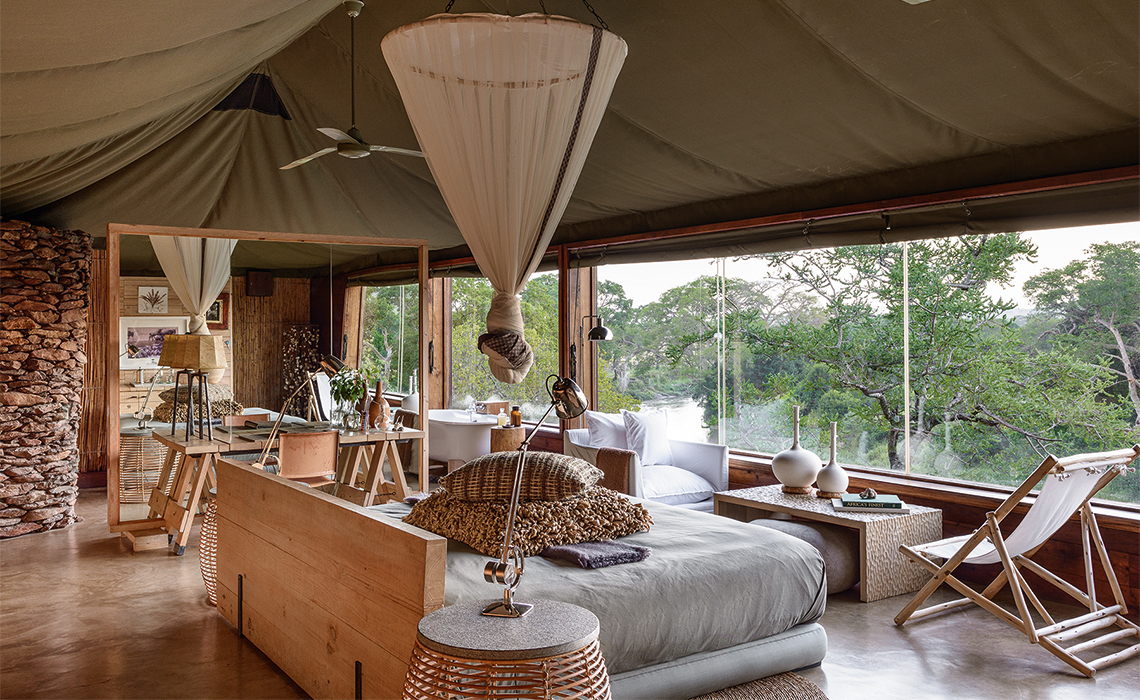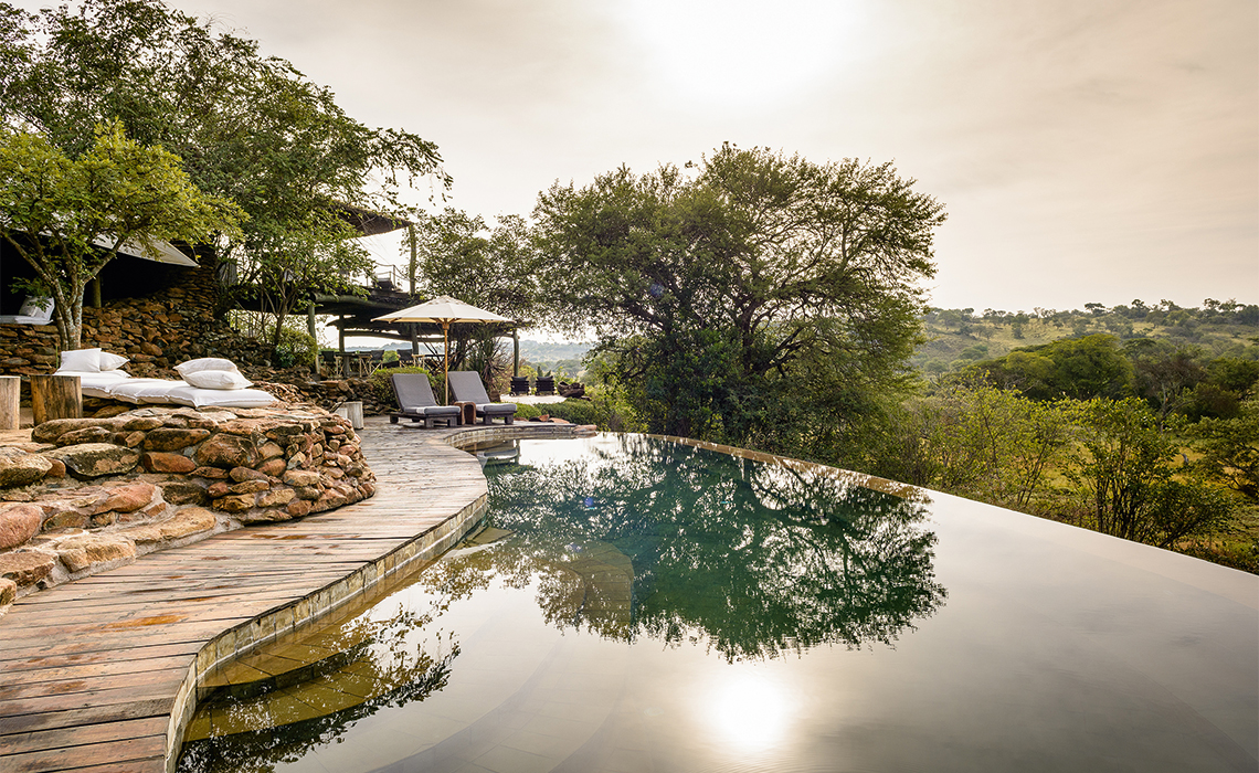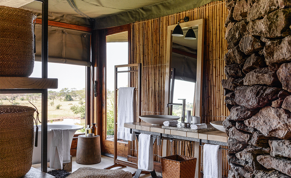 Echte Afrikafans lieben private Safari-Lodges und die Faru Faru Lodge ist wirklich privat. Das Neun-Suiten-Camp steht auf einem sanft abfallenden Hügel im gigantischen Singita-Grumeti-Reservat im beeindruckenden Norden Tansanias. Von jeder der privaten Terrassen aus sind der Grumeti-Fluss und eine Wasserstelle zu sehen, an die Giraffen, Affen, Löwen und andere im Reservat lebende Wildtiere kommen. Man braucht eigentlich gar nicht auf Safari zu gehen, die Safari kommt hier fast ins Haus. Die weitläufigen Suiten sind in klassischem ostafrikanischem Safaristil gestaltet und beeindrucken durch ihre Architektur aus Naturstein und Zeltstoff. Auch bei der Einrichtung wurde auf Lokalkolorit geachtet, aber auch das eine oder andere avantgardistische Designelement integriert. Jede Suite verfügt über ein Bad mit frei stehender Wanne und Dusche, einen Lesebereich und ein Sonnendeck mit Fernrohr. Pool, Spa, Lounge und Bar sowie eine Boutique befinden sich im Hauptgebäude.