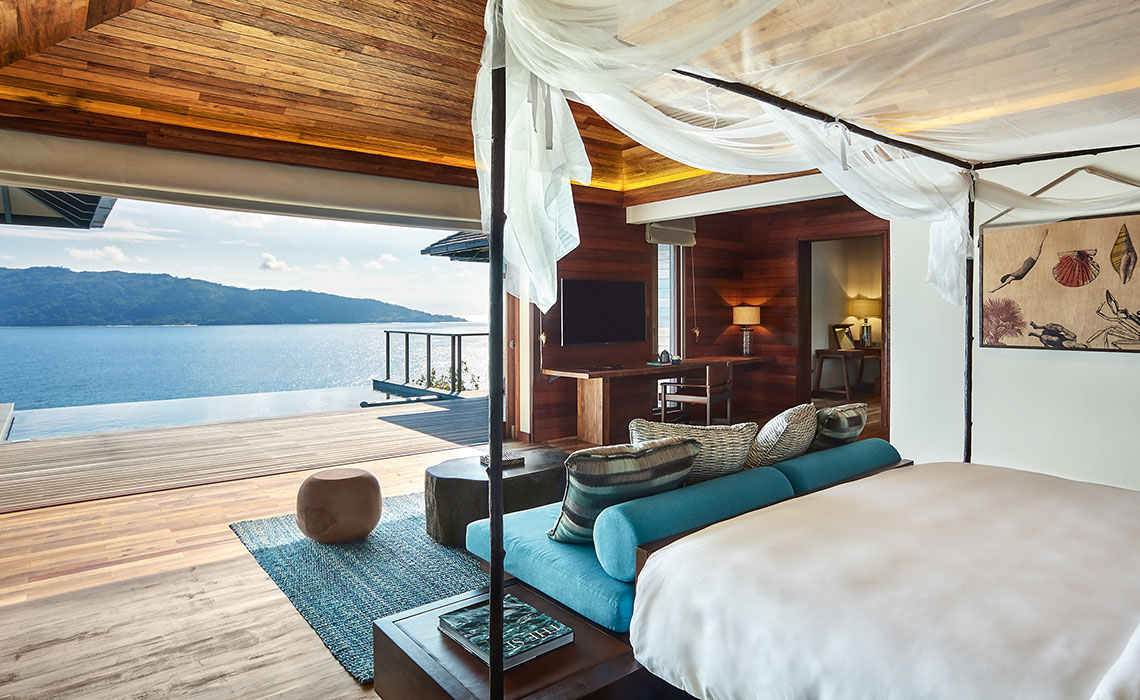 Wunderschöne Strände, raue Felsformationen und tropische Dschungellandschaft: Auf der privaten, fast unberührt wirkenden Insel Félicité, etwa 20 Flugminuten von Mahé entfernt, empfängt das Six Senses Zil Pasyon seine Gäste. Der Mix aus Ursprünglichkeit, einzigartigem Design und Komfort à la Six Senses machen das Resort zu einem perfekten Ort, um den Alltag hinter sich zu lassen. In jeder der 30 Villen und 2 Residences mit drei bzw. vier Schlafzimmern ist absolute Privatsphäre selbstverständlich, genauso wie ein toller Blick auf den Ozean, ein privater Infinity-Pool sowie ein eigener Guest Experience Maker. Gleichzeitig setzt man auf Félicité auf einzigartige Erlebnisse: Genießen Sie ein privates Dinner im Weinkeller oder ein individuelles Livecooking mit dem Küchenchef, lassen Sie sich hoch auf den Felsen mit einer Spa-Behandlung verwöhnen oder entdecken Sie die schönsten Plätze der Insel bei einer Wanderung. Und auch für Inselhopping-Fans ist das Resort ein idealer Ausgangspunkt, um die Seychellen bei Tagesausflügen zu entdecken.