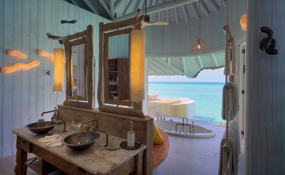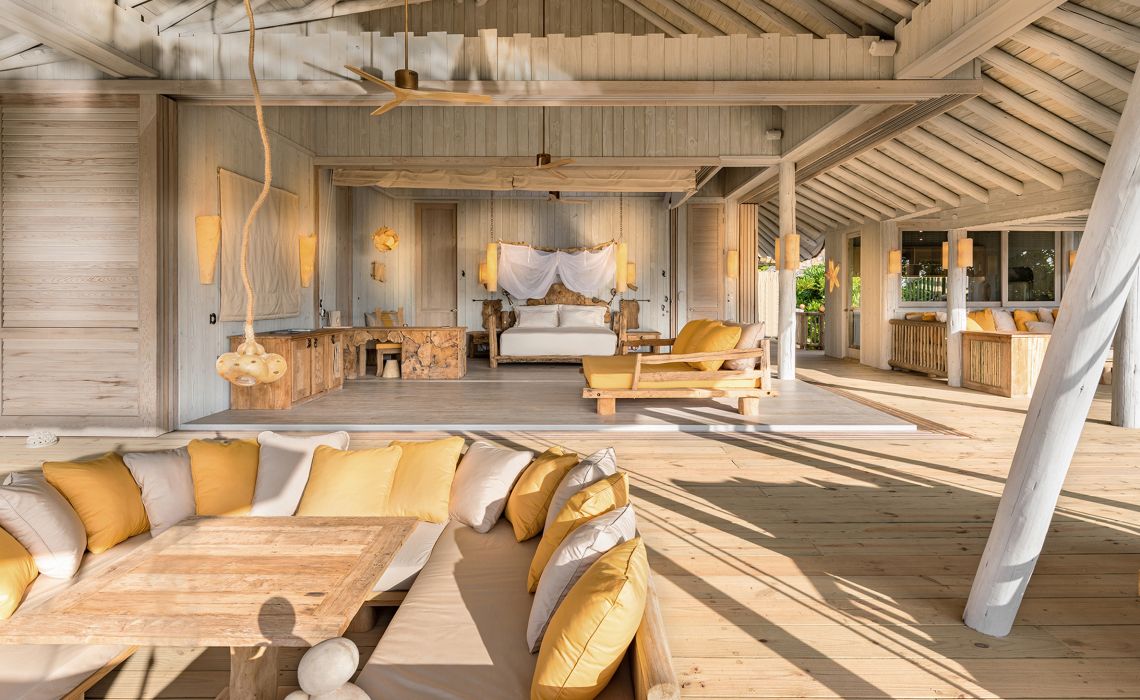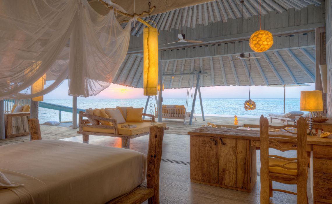 5 über Wasser und 7 am Strand sowie eine frei schwimmend im Meer. Offen und im Maisonette-Stil gestaltet. Ausgestattet mit ein bis vier Schlafzimmern, großzügigem Badezimmer, Ankleidezimmer, Wohnbereich mit Loungemöbeln, Walk-in-Minibar, Außendusche und Pool.