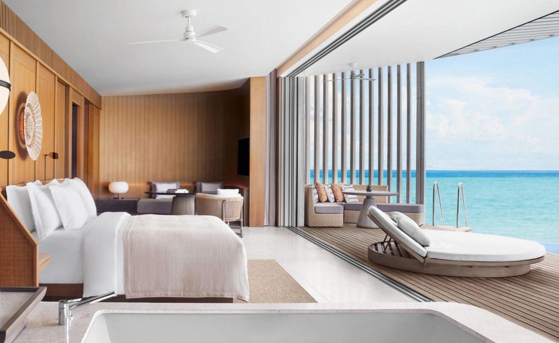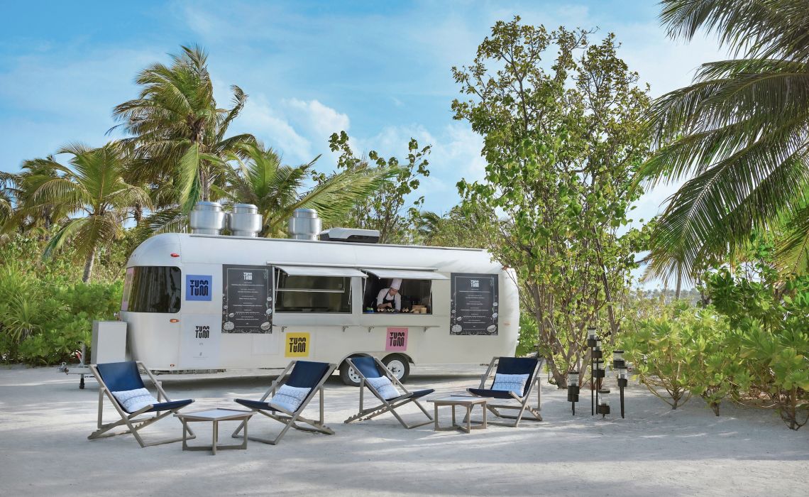 Was sucht der Urlauber auf den Malediven? Luxus? Ruhe? Abgeschiedenheit? Türkis glitzerndes Meerwasser? Die Top-Resorts des Archipels bieten dies und noch viel mehr – jedes für sich auf einer eigenen Insel und Lichtjahre entfernt vom touristischen Tohuwabohu, das andere beliebte Feriendestinationen prägt. Ein wenig Rummel hat aber auch seinen Reiz – jedenfalls dann, wenn er sich hochwertig, geschmackvoll und exklusiv präsentiert. Deshalb wagte Ritz-Carlton zusammen mit zwei weiteren Partnern aus der Luxushotellerie ein so ungewöhnliches wie vielversprechendes Gemeinschaftsprojekt: Fari Islands, eine Inselgruppe, die mit malerischer Marina, lebhaftem Beach-Club, schicken Boutiquen, Bars und Restaurants fast ein wenig Saint-Tropez-Flair verströmt. Die Fari Islands schwimmen im Nord Male-Atoll, nur 50 Speedboat-Minuten oder einen kurzen Hüpfer mit dem Wasserflugzeug vom internationalen Flughafen entfernt. Auf und vor einer eigenen, üppig begrünten Insel mit sichelförmigen Puderzuckerstränden stehen die rund 100 Land- und Überwasservillen des brandneuen Ritz-Carlton. Zur Ausstattung gehören ein bis drei Schlafzimmer, Pool und Panorama Sonnendeck sowie zeitgeistorientierte Interieurs des bekannten Singapurer Designstudios Kerry Hill Architects. Dazu: diverse Bars und Restaurants, ein himmlisches Spa, jede Menge Sportmöglichkeiten und eine kleine Bootsflotte, die Gäste in Nullkommanichts mitten ins Geschehen von Fari Islands Gesellschaftsleben am Yachthafen bringt. So hat man beides: „splendid isolation" und unterhaltsames „people watching".