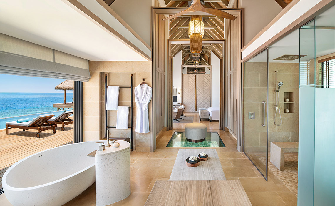 Bei Waldorf Astoria denken Jetsetter sofort an New York – das Traditionshotel am Central Park ist aber derzeit für Renovierungsarbeiten geschlossen. Und überhaupt: Wer will schon nach New York, wenn er auf die Malediven kann? Der Luxus bleibt gleich, nur die Luft ist wärmer. Und es gibt viel mehr Platz. Auf drei Inseln verteilt stehen 119 Strand-, Riff- und Überwasser-Poolvillen, selbst die kleinste davon misst über 230 qm und verfügt über einen zum Meer hin offenen Patio mit Tagesbetten, Infinity-Pool und schilfgedecktem Essplatz. Als exklusive Highlights der Anlage stehen die nur per Boot erreichbaren Stella-Maris-Ocean-Villas zur Verfügung, noch einsamer ist eine Insel mit drei großartigen Villen, eigenem Spa, persönlichem Concierge-Team, privatem Küchenchef und fünf Pools. Wer hier wohnt, wird sein eigenes Heim nicht verlassen wollen. Doch was würde man alles verpassen! Elf unterschiedliche Restaurants mit orientalischer, chinesischer oder gesundheitsorientierter Küche sowie das neu eröffnete ZUMA Restaurant mit traumhaften japanischen Gaumenfreuden. Wellness, Wassersport, Kinderaktivitäten und Hochzeitspavillon – wer das ganze Angebot nutzen möchte, muss mindestens zwei Wochen bleiben. Oder öfter wiederkommen – der Flughafen ist nur eine 40-minütige Yachtfahrt entfernt.