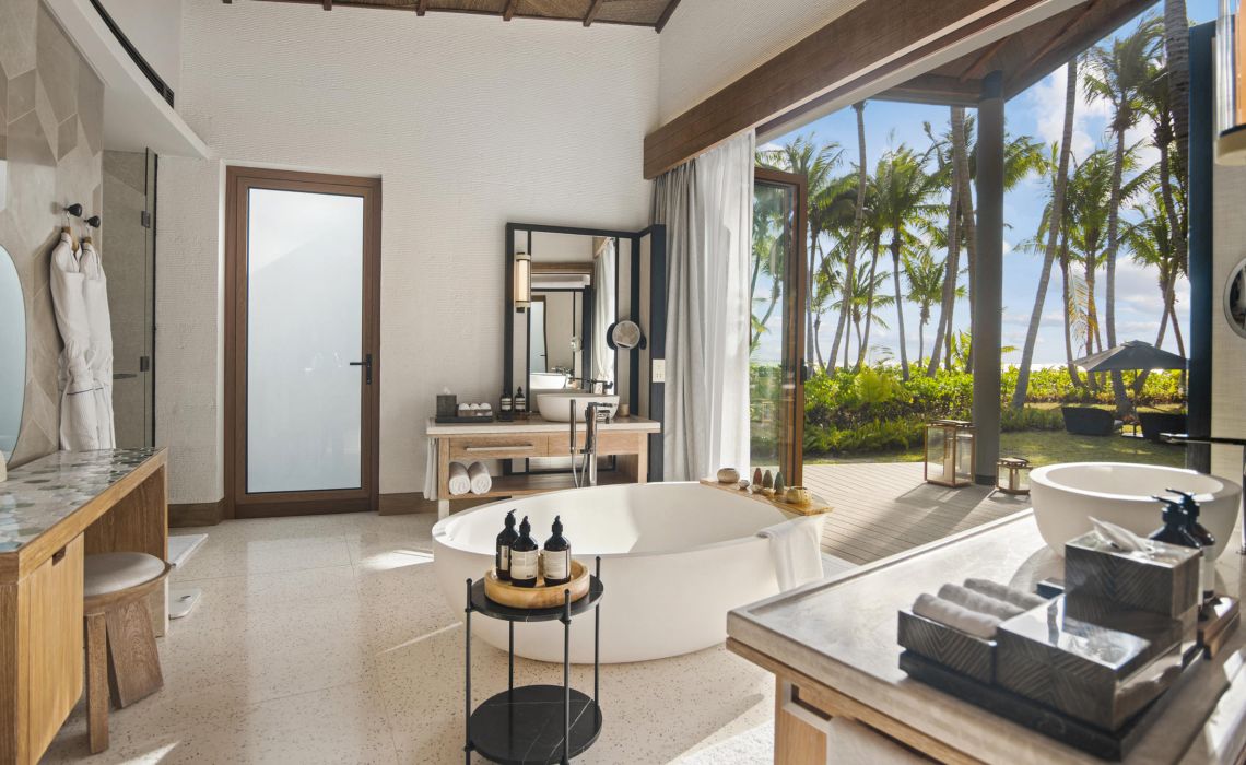 Wer Meeresschildkröten, Riffhaie und Stachelrochen aus der Nähe erleben möchte und ein Naturliebhaber ist, ist auf dieser abgelegenen, 1,6 km langen und 500 m breiten Insel, genau richtig. Aber genauso wohl werden sich Urlauber fühlen, die den Luxus, der von einem Waldorf Astoria erwartet wird, genießen möchten. Platte Island ist von tierreichen Meeresriffen und Lagunen umgeben und war ursprünglich eine unbewohnte Kokosnussplantage. Die 50 Waldorf-Villen wurden behutsam in die Natur eingebettet – diese sind modern gestaltetet, die Innenräume mit Holzböden, in Erdtönen gehaltene Badezimmer, mit frei stehenden Badewannen. Die Villen sind zum Meer hin offen, für Privatsphäre sorgen Schiebewände, die auch auf die große Terrasse, den Infinity-Pool und den üppigen Garten führen. Das kulinarische Angebot punktet mit kreolischen Spezialitäten im Restaurant Maison des Epices, pflanzenbasierter Küche im Restaurant Moulin und feiner Mittelmeer-Kost im Pool-Restaurant La Perle. Natürlich gibt es auch ein schönes Spa mit Hamam, Hydro-Pool, Salons für Haarpflege, Pediküre und Maniküre sowie eine Sauna mit Wänden aus rosa Himalaja-Salz zur Verbesserung der Atemwege.