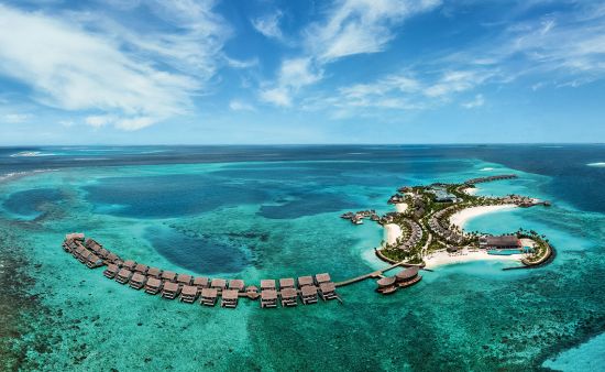 Es gibt 1.200 Malediven-Inseln, die meisten davon sind unberührt. Nur knapp 200 sind bewohnt, entweder von der einheimischen Bevölkerung oder von Urlaubsgästen, die hier ihren Südseetraum ausleben, obwohl sie nicht in der Südsee sind. Die ist viel weiter weg, aber optisch vergleichbar: Beim Anflug aus der Luft wirkt es, als habe Frau Holle ihr Kissen geschüttelt, nur dass anstelle von Federn Inseln in die Tiefe fielen. Dort schwimmen sie nun im türkisblauen Indischen Ozean. Ihr Kern ist dschungelgrün, ihre Ränder sind sandweiß und an langen Stegen, die wie schlanke Insektenbeine über das Wasser führen, reihen sich Häuschen, die sich aus der Nähe betrachtet als meist luxuriöse, großzügige Gäste-Bungalows entpuppen. In der Regel gilt: eine Insel, ein Hotel. In vielen davon wird Privacy zelebriert, in anderen auch öfter gefeiert. Breit gefächerte Wassersportmöglichkeiten, schöne Spas und diverse Restaurants bieten Abwechslung – doch eigentlich braucht man sie nicht. Die Aussicht von der eigenen Terrasse auf das Meer und die Privatleiter ins Wasser reichen, um wunschlos glücklich zu sein. So kommen Freunde ungestörter Einsamkeit ebenso auf ihre Kosten wie all jene, die Unterhaltung, Sport, Gourmet-Dining und Luxus suchen.