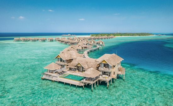Es gibt 1.200 Malediven-Inseln, die meisten davon sind unberührt. Nur knapp 200 sind bewohnt, entweder von der einheimischen Bevölkerung oder von Urlaubsgästen, die hier ihren Südseetraum ausleben, obwohl sie nicht in der Südsee sind. Die ist viel weiter weg, aber optisch vergleichbar: Beim Anflug aus der Luft wirkt es, als habe Frau Holle ihr Kissen geschüttelt, nur dass anstelle von Federn Inseln in die Tiefe fielen. Dort schwimmen sie nun im türkisblauen Indischen Ozean. Ihr Kern ist dschungelgrün, ihre Ränder sind sandweiß und an langen Stegen, die wie schlanke Insektenbeine über das Wasser führen, reihen sich Häuschen, die sich aus der Nähe betrachtet als meist luxuriöse, großzügige Gäste-Bungalows entpuppen. In der Regel gilt: eine Insel, ein Hotel. In vielen davon wird Privacy zelebriert, in anderen auch öfter gefeiert. Breit gefächerte Wassersportmöglichkeiten, schöne Spas und diverse Restaurants bieten Abwechslung – doch eigentlich braucht man sie nicht. Die Aussicht von der eigenen Terrasse auf das Meer und die Privatleiter ins Wasser reichen, um wunschlos glücklich zu sein. So kommen Freunde ungestörter Einsamkeit ebenso auf ihre Kosten wie all jene, die Unterhaltung, Sport, Gourmet-Dining und Luxus suchen.