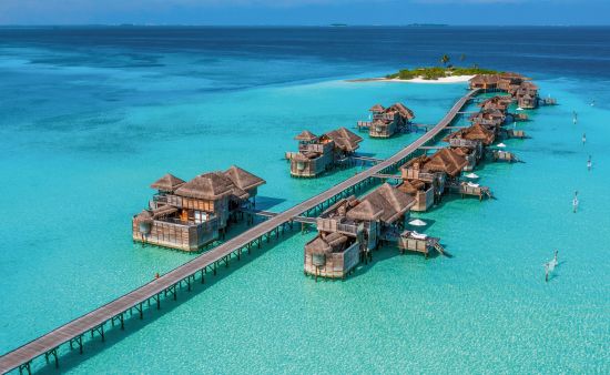 Es gibt 1.200 Malediven-Inseln, die meisten davon sind unberührt. Nur knapp 200 sind bewohnt, entweder von der einheimischen Bevölkerung oder von Urlaubsgästen, die hier ihren Südseetraum ausleben, obwohl sie nicht in der Südsee sind. Die ist viel weiter weg, aber optisch vergleichbar: Beim Anflug aus der Luft wirkt es, als habe Frau Holle ihr Kissen geschüttelt, nur dass anstelle von Federn Inseln in die Tiefe fielen. Dort schwimmen sie nun im türkisblauen Indischen Ozean. Ihr Kern ist dschungelgrün, ihre Ränder sind sandweiß und an langen Stegen, die wie schlanke Insektenbeine über das Wasser führen, reihen sich Häuschen, die sich aus der Nähe betrachtet als meist luxuriöse, großzügige Gäste-Bungalows entpuppen. In der Regel gilt: eine Insel, ein Hotel. In vielen davon wird Privacy zelebriert, in anderen auch öfter gefeiert. Breit gefächerte Wassersportmöglichkeiten, schöne Spas und diverse Restaurants bieten Abwechslung – doch eigentlich braucht man sie nicht. Die Aussicht von der eigenen Terrasse auf das Meer und die Privatleiter ins Wasser reichen, um wunschlos glücklich zu sein. So kommen Freunde ungestörter Einsamkeit ebenso auf ihre Kosten wie all jene, die Unterhaltung, Sport, Gourmet-Dining und Luxus suchen.