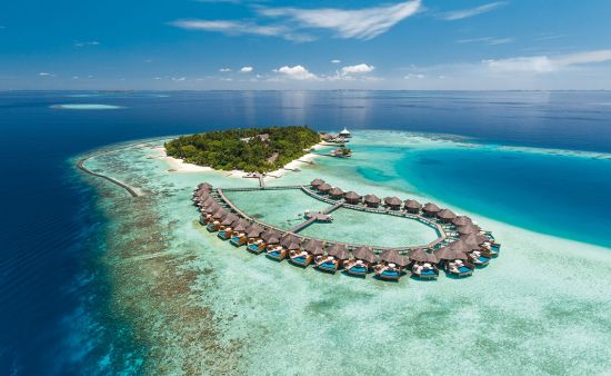 Die kleine, mit üppiger Vegetation überzogene Insel liegt im Nord-Male-Atoll, nur 25 Minuten mit dem Schnellboot vom Flughafen entfernt. Unter hohen, Schatten spendenden Kokospalmen schlängeln sich gepflegte Sandwege zu den Beach-Villen oder zum Steg, der zu den Wasservillen ...