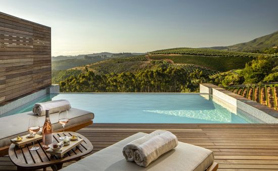 Das Delaire Graff Estate befindet sich auf dem höchsten Gipfel des Hels-hoogte-Mountain-Passes und bietet einen traumhaften Blick auf die Weinfelder von Stellenbosch. Die luxuriösen Suiten mit privatem Pool sind aus natürlichen Materialien wie Stein und Holz gebaut und mit ...